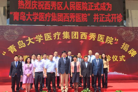 经两地卫生计生委、区政府及青岛市赴安顺市第四批挂职干部团队的多方协调,5月3日,安顺市西秀区人民医院与青岛大学医疗集团签订协议,安顺市西秀区人民医院正式加盟青岛大学医疗集团,这也是青岛、安顺两地之间首个集团化发展的共建医院。安顺市及西秀区的相关领导与青岛大学医疗集团总院长王新生参加了相关活动。