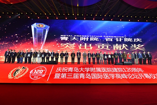 在医院的发展和学科建设过程中,得到了众多院士、国内外专家和同道、相关企业、社会各界朋友给予的大力帮助和支持,更离不开我院一代代医务工作者的呕心沥血、无私奉献和开拓进取。为表示感谢,医院为评选出的“青大附院百廿贡献人物”颁奖。美国休斯敦何曼医疗集团前任CEO Professor Wagner,德国Marl市立医院放射科Professor Apitzsch,日本秋本病院理事长、院长 Professor Ryoichi Akimoto等荣获“青大附院国际友谊奖”;陈孝平院士、董家鸿院士、葛均波院士、孙颖浩院士、谢立信院士、于金明院士、詹启敏院士、张英泽院士、海信集团董事长周厚健以及国内知名的学者专家房静远、高解春、郭卫、江泽飞、任建安、申昆玲、许兰平教授荣获“青大附院杰出贡献奖”;我院120位专家学者荣获“青大附院突出贡献奖”。