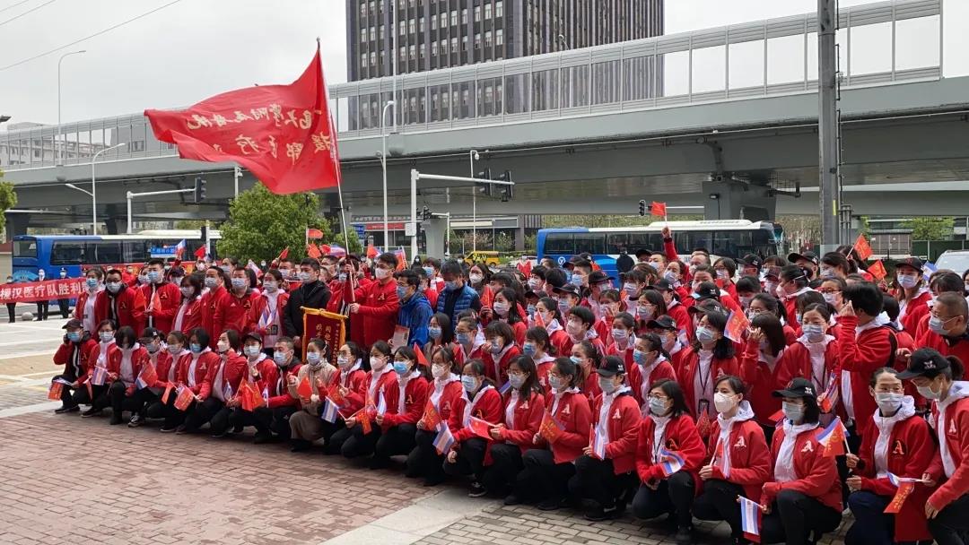 3月31日,青大附院第三批援鄂医疗队132名队员圆满完成武汉支援任务后,从湖北武汉华中科技大学同济医学院附属同济医院光谷院区撤离,搭乘专机直飞青岛。