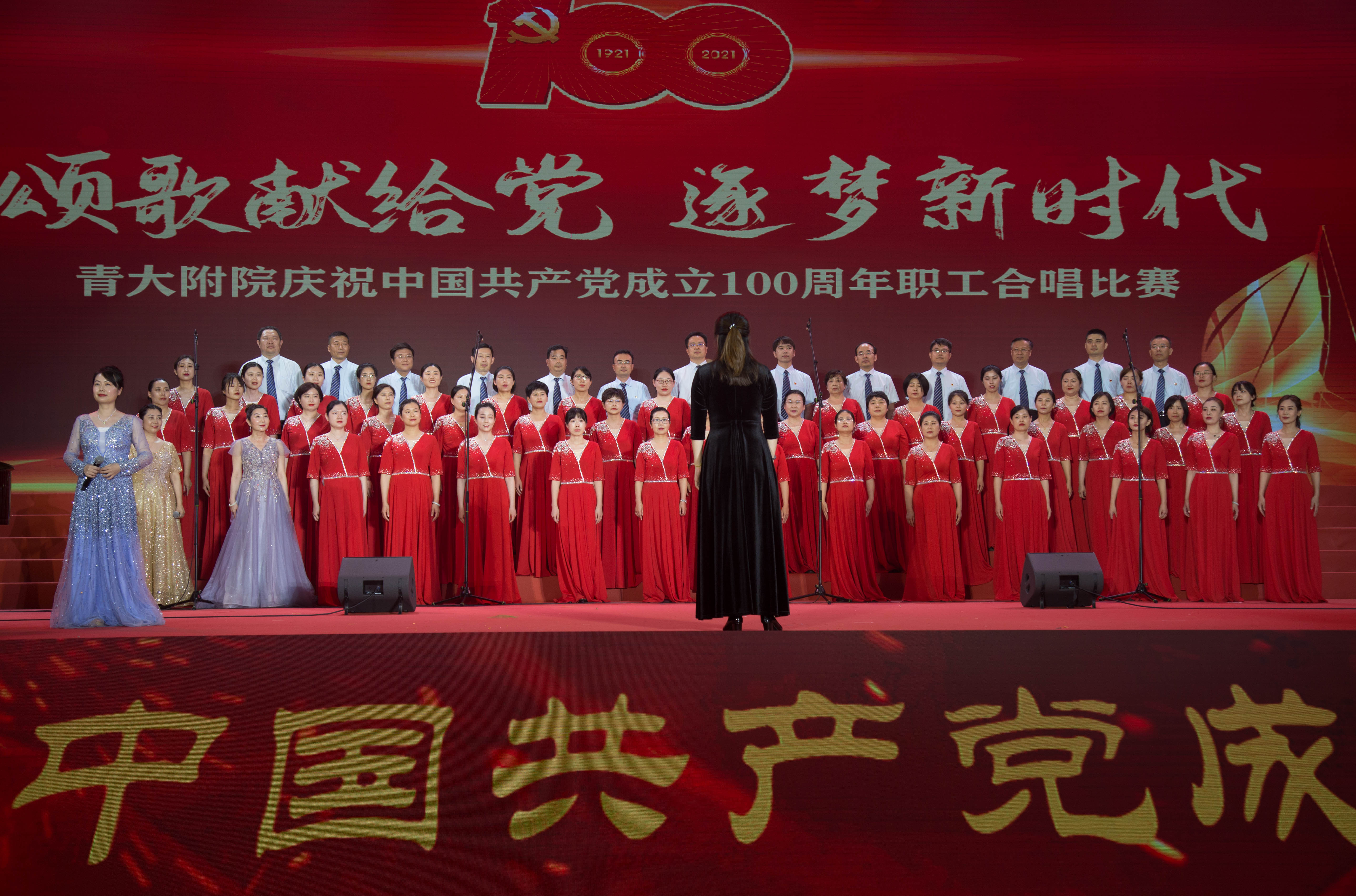医院院长董蒨,医院党委委员、纪委书记孙黎惠,青岛大学第一临床医学院党委委员、副院长曲政海,青岛大学医疗集团副院长贾绍友,医院副院长李环廷、张斌分别为合唱比赛一等奖、二等奖、三等奖及特别表演奖的参赛队伍颁奖。