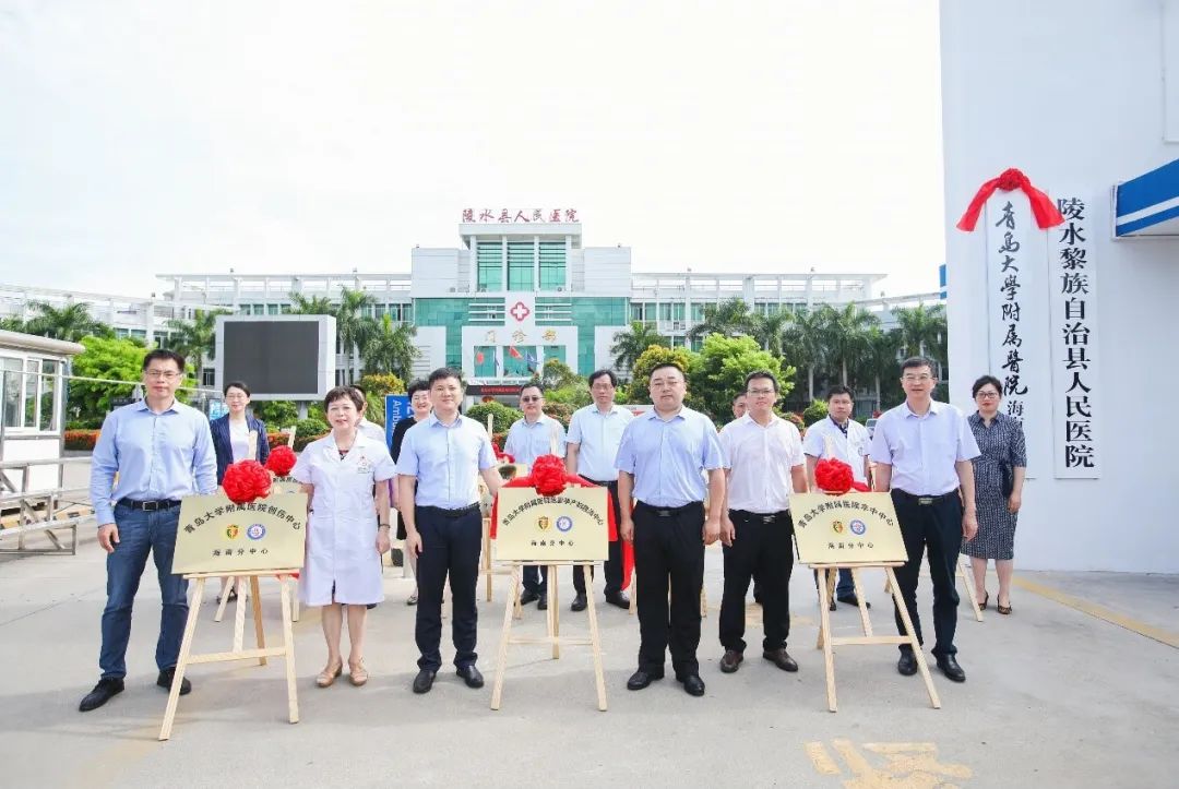 山东省卫健委王正武巡视员、青岛市卫健委吕坤政处长、青大附院王新生书记、蒋光峰常务副院长与海南省卫健委周长强主任、陵水县委符鸣书记、陵水县政府李功成副县长、陵水县卫健委邱进文主任共同为“红宝石最新线路手机版海南分院”揭牌。